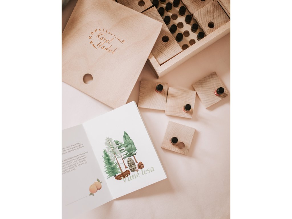 Kouzelná dřevěná krabička plná vůní. Chcete se dozvědět více o síle rostlin a jejich působení na lidské tělo i mysl? Přibližte svět aromaterapie i dětem a objevujte s nimi účinky éterických olejů získávaných z přírodních surovin. Voňavá poznávací sada vám pomůže z trochu netradičního úhlu nahlížet na byliny a rostliny, které nás obklopují v běžném životě... při procházce lesem, na zahrádce nebo poskytují svou příjemnou chuť v podobě ovoce či koření. Motivační sada splňuje prvky přístupu Montessori pedagogiky. Sada obsahuje 24 lahviček o objemu 1 ml s různými éterickými oleji. Troufnete si rozpoznat je podle čichu? Pomocníkem bude brožurka s nápovědou pro vás i pro děti. Dozvíte se zde také více podrobností o účincích rostlin, ze kterých jsou éterické oleje získávány. Součástí balení je i 24 dřevěných čtverečků ideálních pro nanesení éterických olejů. Po provlečení stužky je tak můžete kamkoli zavěsit a provonět celou domácnost nebo jiné prostory.Doplňkové parametry