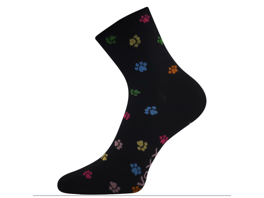 Veselé ponožky mají špičku ponožky uzavřenou náročnějším řetízkováním, díky kterému je spoj dokonale hladký a nehrozí, že ponožka bude tlačit. Lem ponožek je extra jemný a nestahující, vysoký podíl bavlny je příjemný na nošení. Tenké ponožky ve střední výšce mají obrázkové motivy, v teplotní třídě A je můžete nosit v rozmezí teplot od +10°C do +35°C.Doplňkové parametry