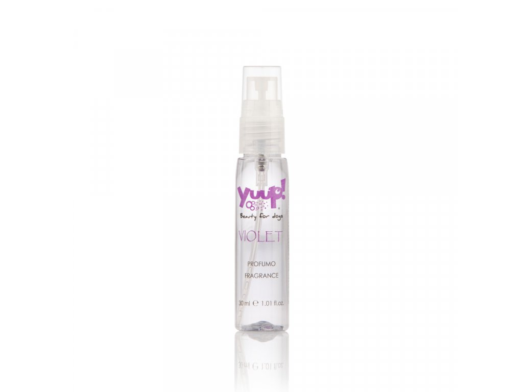 Vůně Yuup VIOLET 30ml Vůně pro psy a kočky s květinovými tóny růže, jasmínu, šeříku a bílého pižma. Návod k použití: Nastříkejte lehce na srst. Pouze pro vnější použití. Nepoužívejte v případě onemocnění kůže.Doplňkové parametry