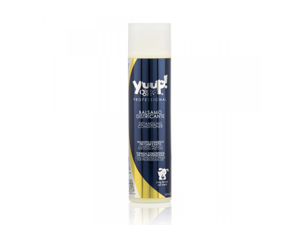 Výživný a rozčesávací kondicioner pro psy Yuup okamžitě hydratuje a revitalizuje i velmi poškozenou srst, usnadňuje odstranění zacuchání a zabraňuje jejich vzniku. Ideální pro všechna plemena a typy srsti. Vytváří efektní ochrannou vrstvu po celé délce chlupu, zanechává okamžitě lesk a usnadňuje česání jak suché tak i mokré srsti. Je obohacen o kvaternizovaný keratin, kreatin, vitamíny C + E + panthenol ve vysoké koncentraci pro rozčesání a výživu. Phytoceramidy extrahované ze semínek slunečnice zaručují celkovou ochranu, Hydrolizované rýžové bílkoviny a přírodní extrakt z bambusu pomáhají tvarovat srst. Pro výsledný efekt se nedoporučuje používat pro drsnosrstá plemena. --- Návod k použití: Před začátkem koupele nařeďte (doporučené ředění 1:10 maximální až 1:20, v případě použití neředěného přípravku nehrozí žádné kontraindikace) protřepejte a nechte rozpouštět minimálně 10 minut v teplé vodě a před použitím protřepejte ještě jednou. Aplikujte na mokrou srst zvířete, vmasírujte do pokožky, poté opláchněte vlažnou vodou. Vyvarujte se kontaktu s očima. V případě zasažení očí vypláchněte vlažnou vodou. nepoužívejte v případě onemocnění kůže. Příklady vhodných plemen: Všechna plemena s vyjímkou drsné a kadeřavé srstiDoplňkové parametry
